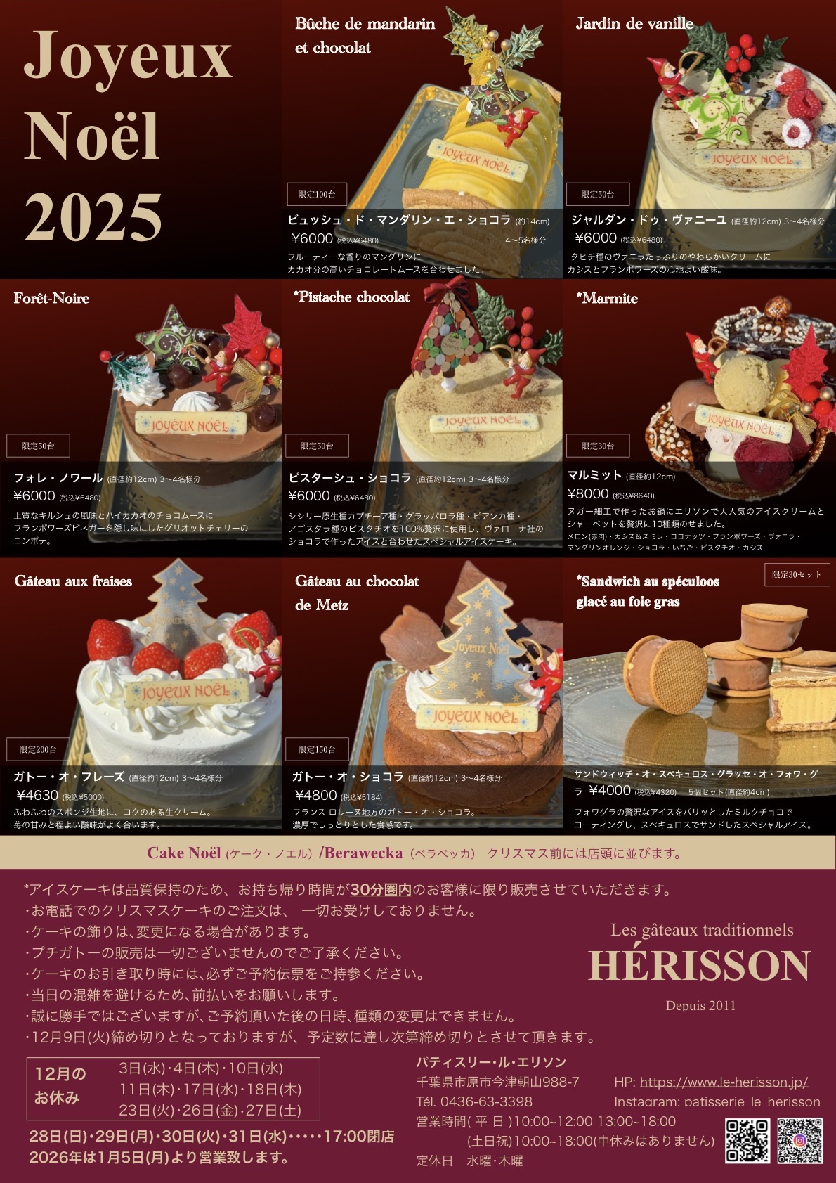 2025年のクリスマスケーキのご予約を開始いたしました。